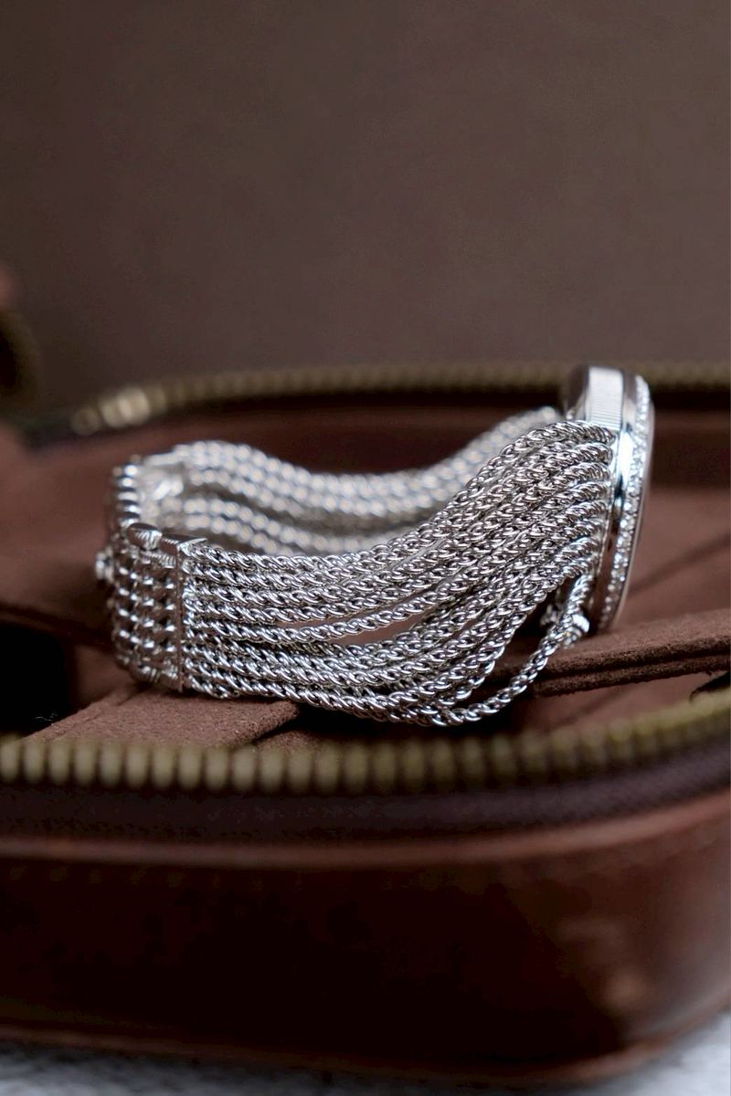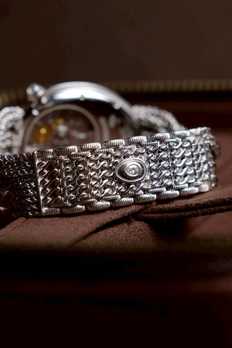 ระบบกลไก Automatic Chain-link bracelet แบบถักทำจาก18K White Gold ทั้งเส้นเลยครับ อุปกรณ์ กล่องใบ