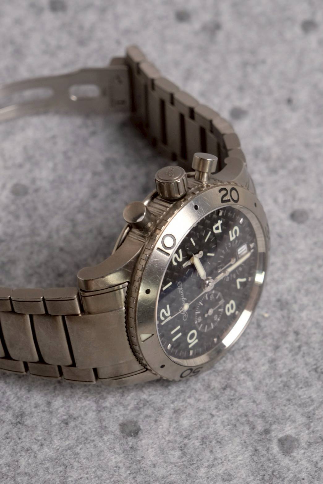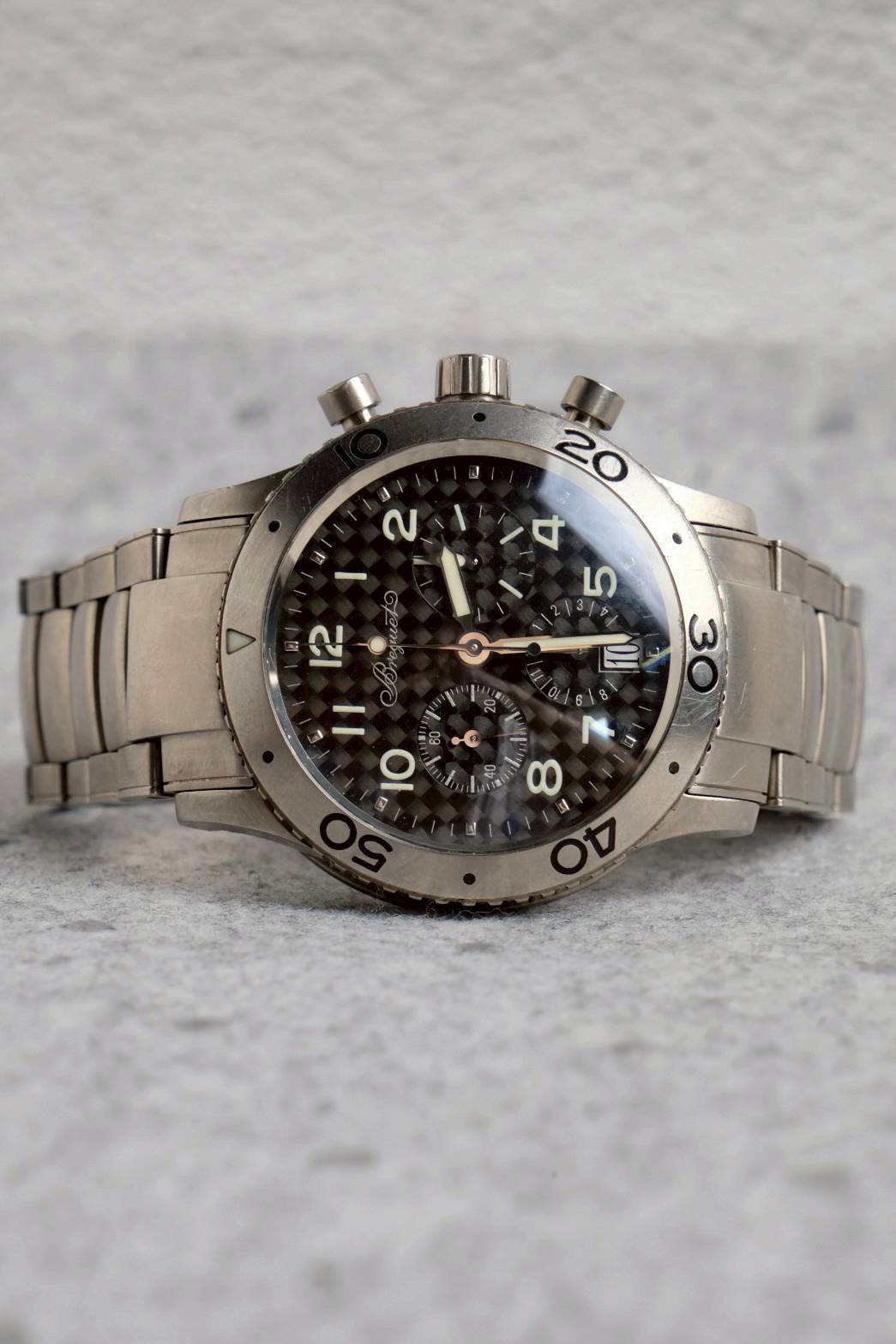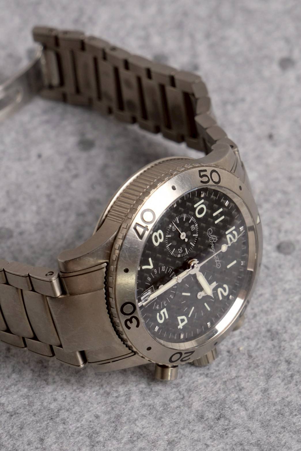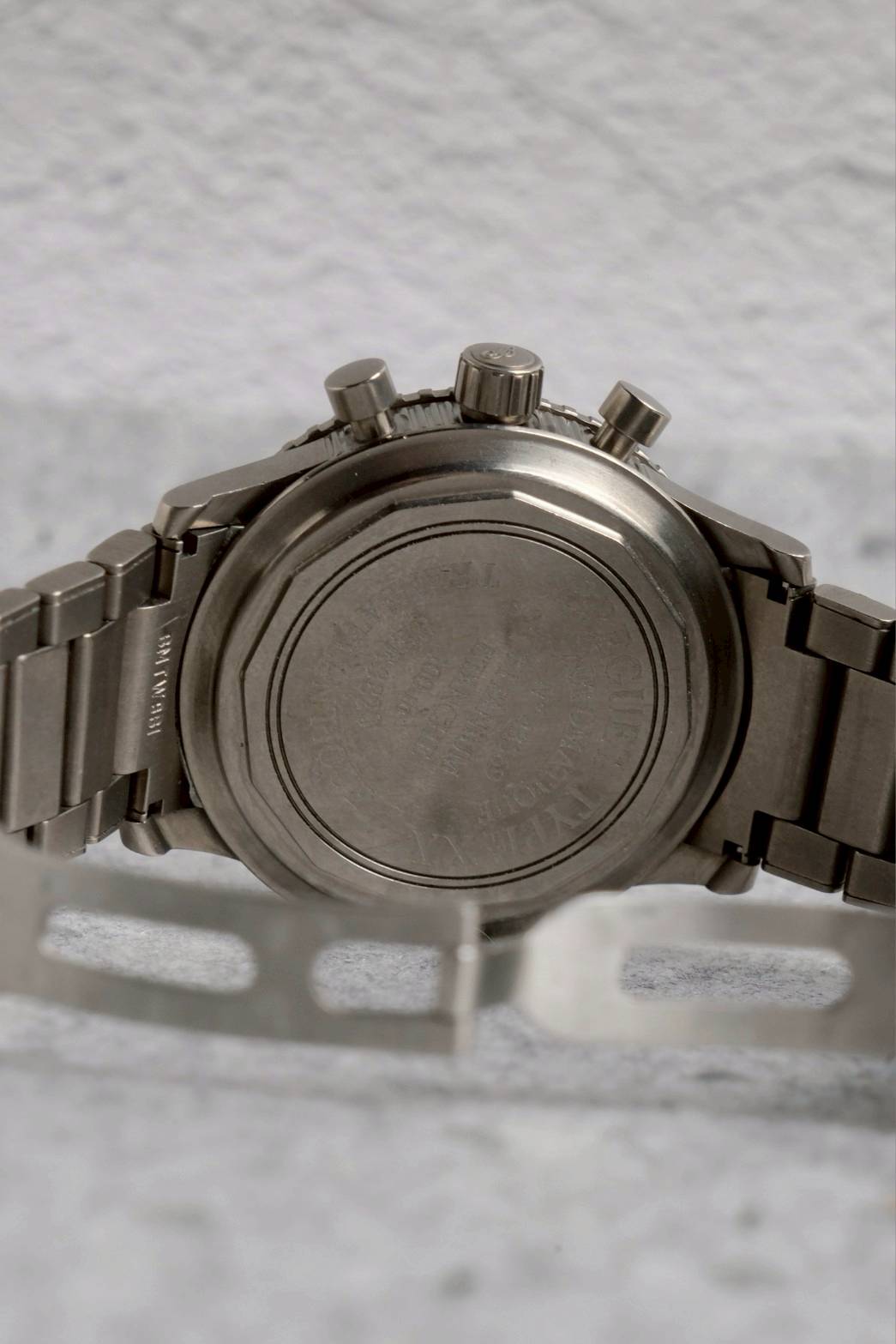วัสดุตัวเรือนและสายทำจาก Titanium ขนาดประมาณ 39 mm หน้าปัด Kevlar ฟังก์ชันโครโนกราฟ Flyback ขอบด้าน เครื่อง Automatic มาแต่ตัวเรือนครับ