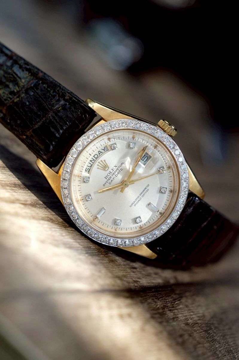 1803 คือหนึ่งในรุ่นวินเทจระดับไอคอนของตระกูล Day-Date หรือที่เรียกกันว่า “President” เป็นนาฬิกาที่สะท้อนความหรูหราและอำนาจมากที่สุดรุ่นหนึ่งของ Rolex ขนาด 36 mm หน้า Gold Dial หลักเพชร