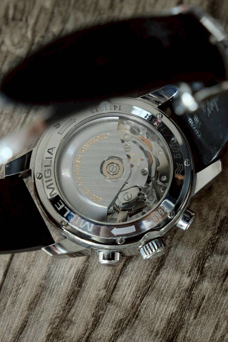 รับแรงบันดาลใจจากการแข่งขันรถคลาสสิก Mille Miglia ในอิตาลี โดย Chopard เป็นผู้สนับสนุนและผู้จับเวลาอย่างเป็นทางการตั้งแต่ปี 1988 นาฬิการุ่นนี้จึงออกแบบให้มีอารมณ์สปอร์ตแบบเครื่องมือจับเวลาในรถแข่งโบราณ ขนาด 42mm ตัวเรือน Steel ฝาหลังเปลือย เครื่อง Automatic มาแต่ตัวเรือนครับ