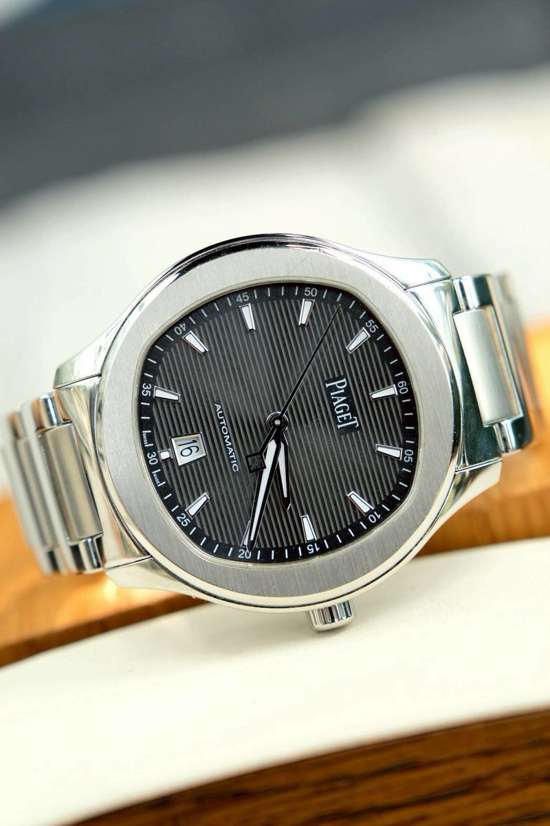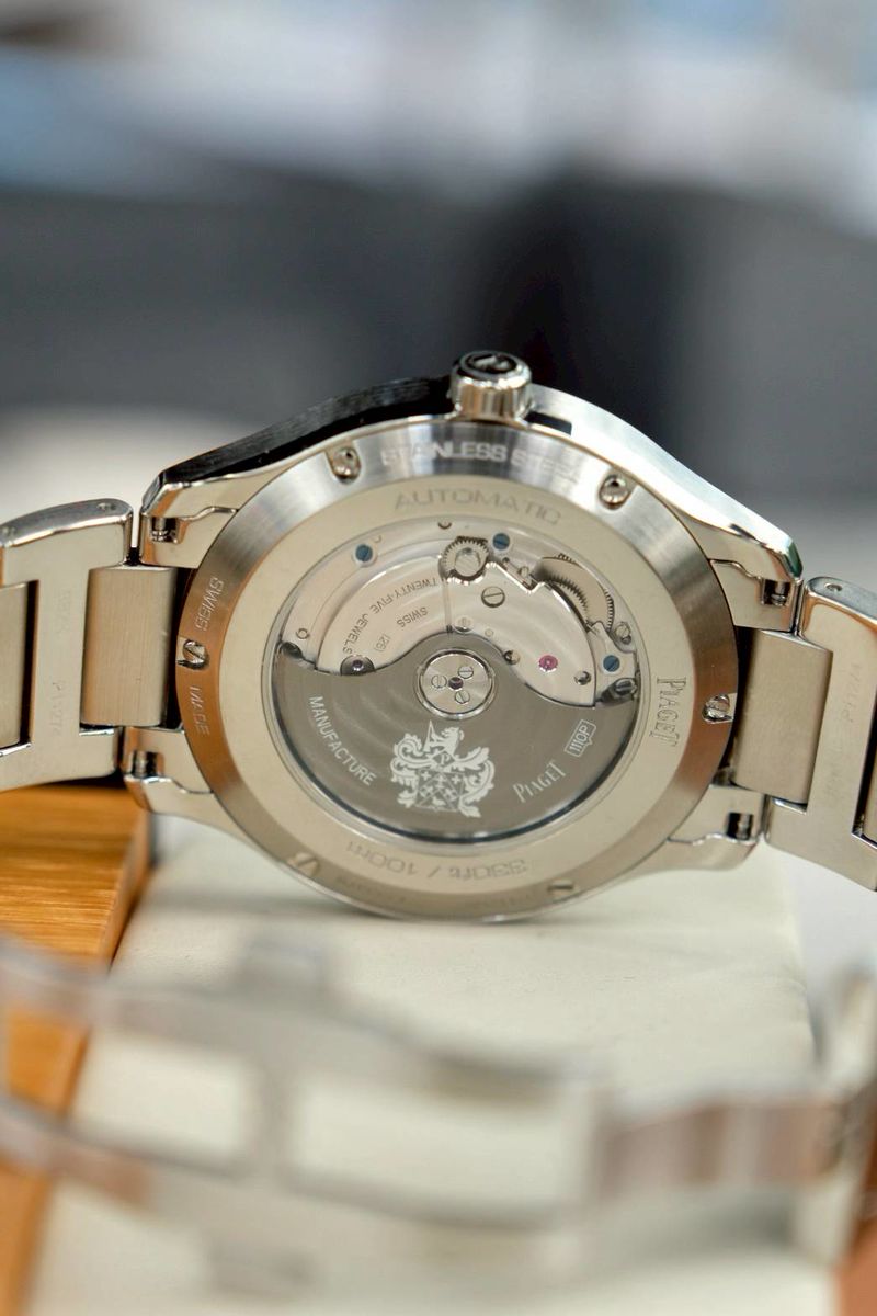 มาร์กเกอร์ชั่วโมงแบบมีสารเรืองแสงและวันที่ที่ตำแหน่ง 6 นาฬิกา เข็มวินาทีตกแต่งด้วยตัวย่ออักษร “P” แบบเจาะ (open-worked letter “P”) ซึ่งเป็นสัญลักษณ์ของ Piaget และฝาหลังโปร่งใส สามารถเห็นกลไกได้