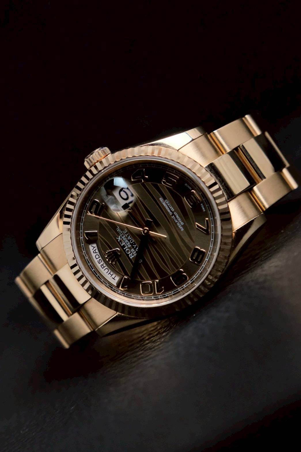 ขนาด 36mm หนเาปัด Brown Wave Dial ขุดเข็มทองคำ ตัวเรือน 18K Rose Gold ทั้งเรือน